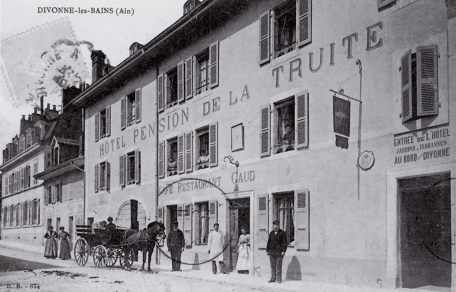 En face du chalet du Mont-Blanc se trouvait (et se trouve toujours) l’hôtel de La Truite, probablement le plus ancien hôtel de Divonne (fondé en 1783), qui a fortement contribué à la notoriété touristique de la station.