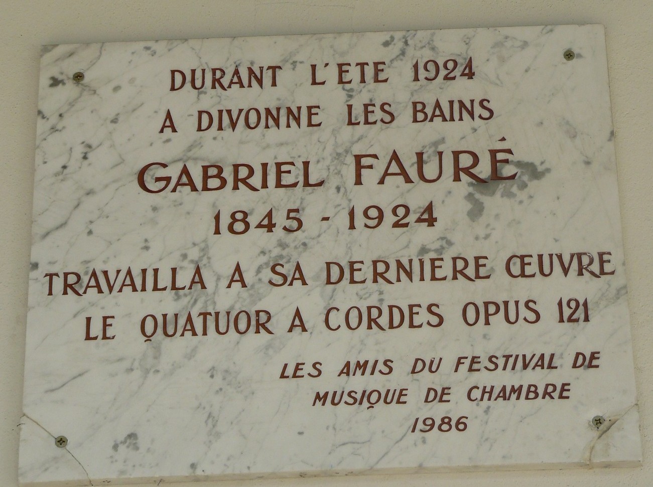 Le compositeur Gabriel Fauré a fait de fréquents séjours à Divonne pour raison de santé. Il se sentait bien à Divonne. Il appréciait le calme, la verdure et la joyeuse compagnie.