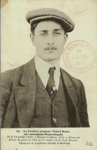 Quand René Vidart est descendu du train à Divonne le 11 juin 1911, les Divonnais étaient sur le quai pour l’accueillir, fanfare en tête. Les journalistes préparaient leurs questions, tout excités, leur calepin à la main. Et voilà le grand jeune homme svelte, élégant, distingué qui apparait avec son beau sourire. Il a l’air si délicat, avec son regard un rien mélancolique, on se demande comment il peut se battre dans le ciel contre les éléments déchainés. Lui si smart, peut-on l’imaginer débraillé et couvert d’huile de ricin? Les gens l’ont surnommé « le grand gosse joyeux ». Il s’exprime si bien. Il parle comme un poète…