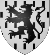 « D’azur à trois morailles d’or posées en fasce l’une sur l’autre, au chef d’argent chargé d’un lion issant de gueules. »