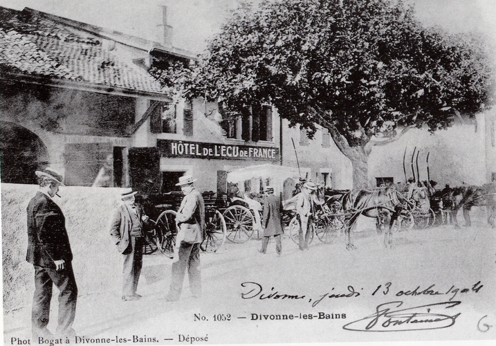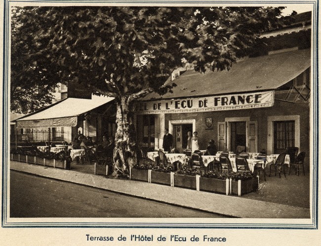 Juliette, la fille de Marguerite et Isidore Baumgartner, évoquait avec fierté les clients de Paris-Rome : « Saint-Exupéry a dîné souvent le soir à l’Ecu de France… Bernanos a logé 3 semaines en 1928 dans la chambre 11, il était très dépressif, il n’avait pas de quoi payer la note… Léon Blum a dîné une fois dans le petit jardin… Le Duc de Talleyrand et Vallencay venait souvent, en ami… »