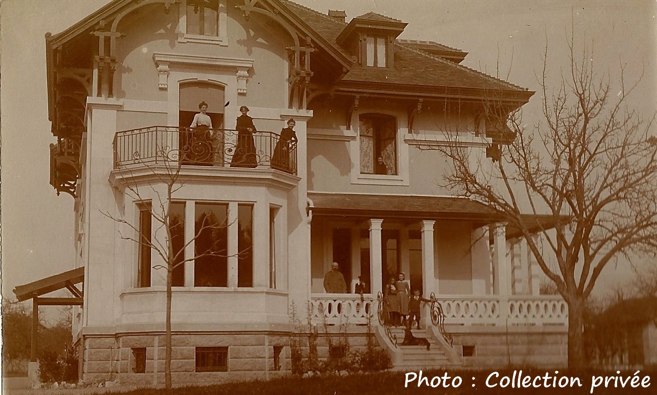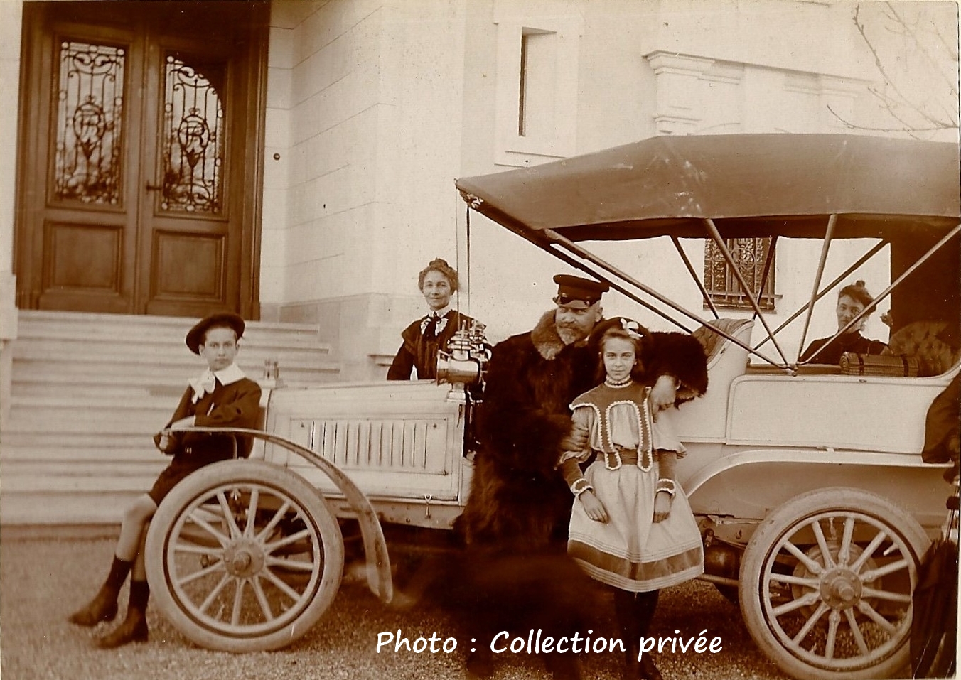Emile Charbonnier, ingénieur cantonal de Genève pose ici en compagnie de ses enfants et de son épouse devant la villa Roland.