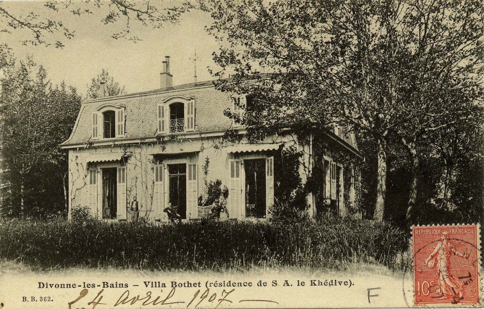 Il résidait dans une charmante « petite » villa avec un toit à la française, entourée d’un vaste jardin ombragé et isolée de l’extérieur par une haie d’ifs pour bien respecter le désir de repos de Son Altesse. La villa avait appartenu au docteur Fernand Bottey, un éminent médecin thermal dont la veuve a vendu la villa à la Société des Bains qui la louait au Khédive.