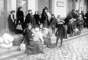 De nombreuses communes françaises, villages aussi bien que villes, ont accueilli des réfugiés et des déplacés pendant la guerre de 14-18 et jusqu’en 1920. Certaines communes, par exemple Bourg-en-Bresse ont accueilli par centaines des familles fuyant Belfort dès le 5 août 1914. Elles arrivaient à Bourg en train. Elles étaient réparties dans des familles. Plus tard, la France a accueilli les Belges et les habitants des départements du nord fuyant leur ville dévastée.
