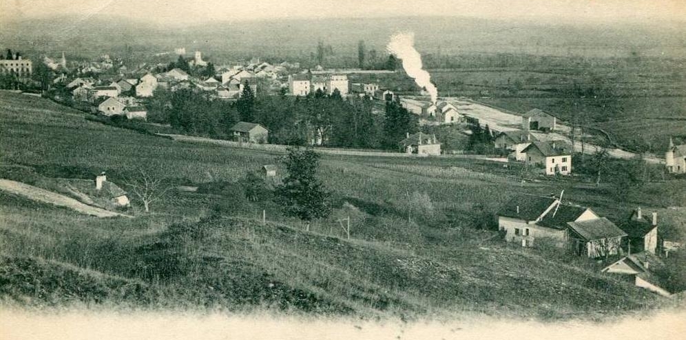 Photo ci-dessous : Sur les pentes du Mont Mussy, on voit les vignes qui ont donné son nom à la rue de Vigny. A droite, côté Alpes, aucune construction : le terrain est gonflé d’eau. Il borde le vaste marais qui s’étend de Crassy (marais des Broues) à Grilly (marais Prodon) où les Divonnais allaient ramasser la blache ou chasser les canards. Plus près du bourg, il allaient aux grenouilles et aux escargots. La zone humide a été amputée au 20è siècle (en gros) d’un tiers de sa surface pour le creusement du lac de Divonne, la zone de loisirs et les surfaces goudronnées alentour.