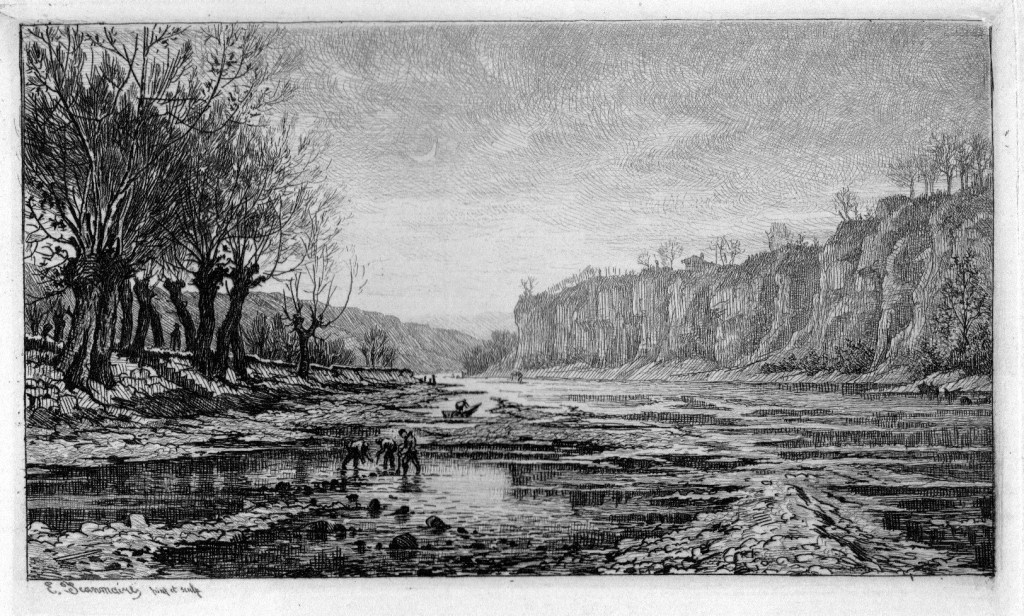 Il est probable que Gargantua a construit son gué en aval de Genève, non pas sur le lac, mais sur le Rhône. C’était l’époque, il y a longtemps-longtemps, où le Rhône se perdait. Voui! Il se perdait, se promenait sous terre, puis réapparaissait au grand jour quand ça lui chantait. Comme tous les fleuves, il n’en faisait qu’à sa tête! Depuis la construction du barrage de Génissiat, le niveau de l’eau du Rhône a monté-monté. Maintenant on ne voit plus les endroits où le Rhône disparaissait sous terre, quand il était libre et qu’il pouvait jouer à cache-cache avec les géants…