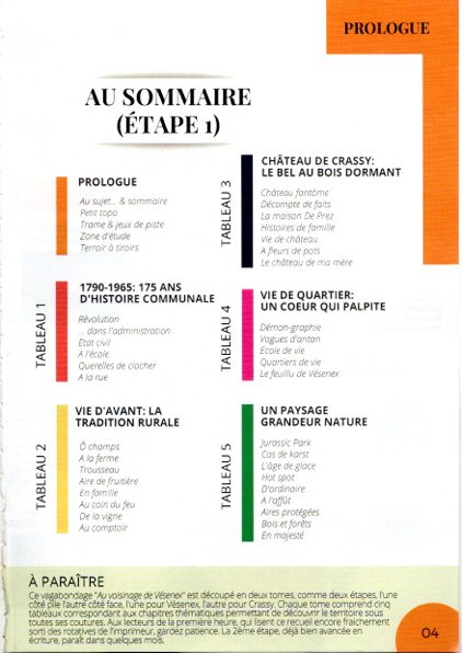Temporel : Le ton plaisant, émaillé de devinettes, anecdotes pittoresques, jeux de mots ne doit pas masquer le sérieux de l’affaire. Ce vagabondage, fruit d’un énorme travail de recherches dans les archives et de nombreuses interviews, nous aide à voyager de siècle en siècle à travers la Grande Histoire. Nous apprenons beaucoup sur les personnalités qui ont vécu à Vésenex (la famille De Prez, le banquier Alfred André…) Ce petit livre est dense. Il apporte beaucoup à la connaissance de Divonne. Et ce n’est que la première étape! Un tome 2 est annoncé pour le printemps. Il traitera surtout de l’aspect frontalier de Vésenex, en particulier en temps de guerre.