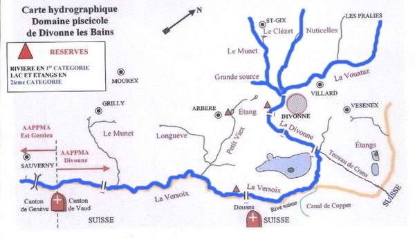 Il y a presque 25 ans que j’ai cessé de pêcher dans la rivière à Divonne, elle est maintenant (en 1996) recouverte comme un égout en amont de la Mairie (7), ainsi que le Clézet et la Ouate près de leurs confluents respectifs.