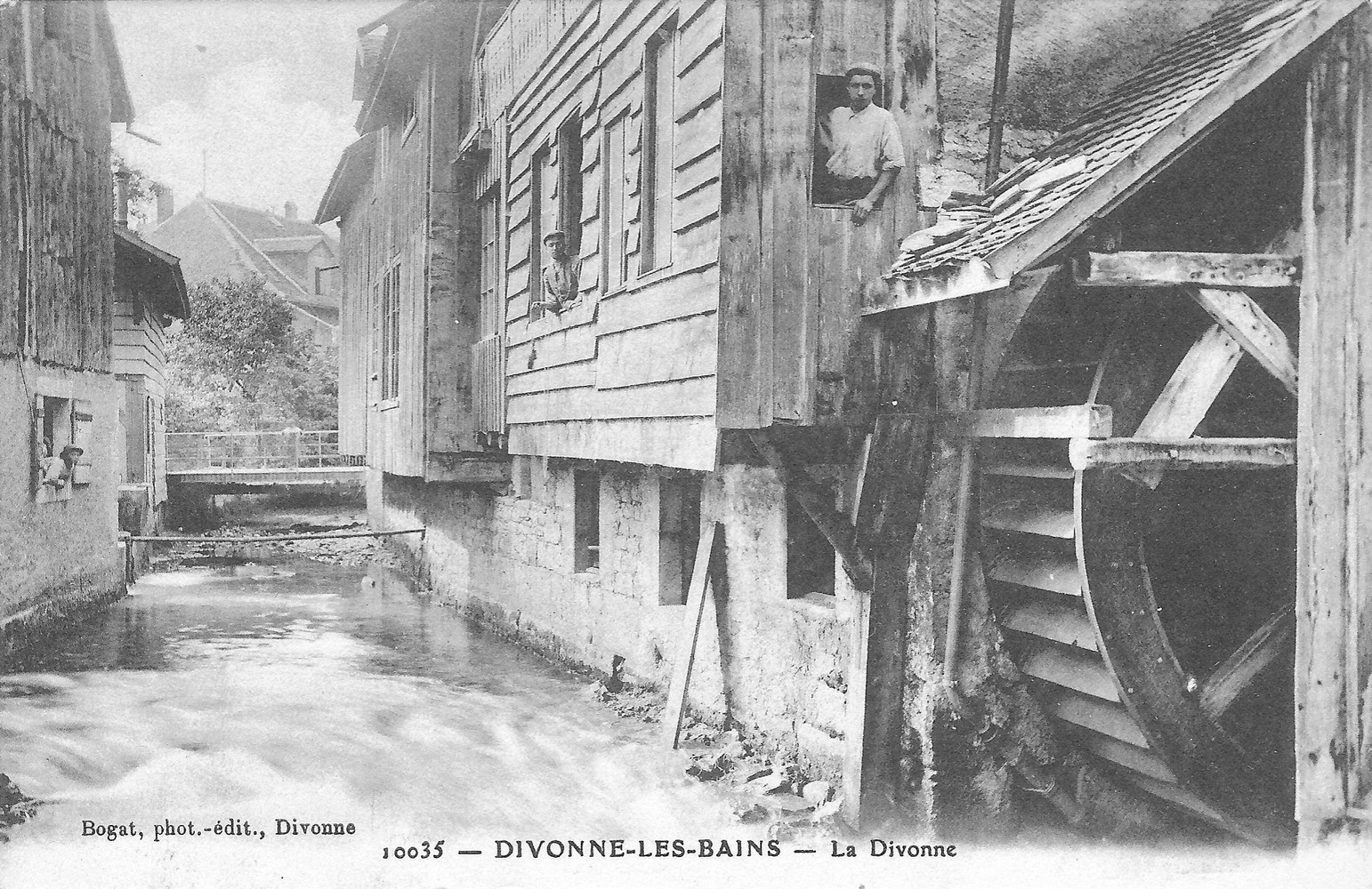 3 – Il s’agit du Moulin David, ancienne usine hydro-électrique qui a fourni du courant à la Société des Bains de 1887 à 1993. Elle a été remise en état de fonctionnement par des bénévoles. Elle est gérée par l’association DivonnElectro.