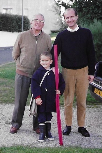 Photo prise en 1995 : les Quentin, grand-père, fils et petit-fils se préparent à partir à la pêche.
