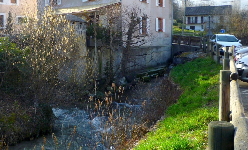 2 – Le Munet traverse le Golf. Le Clézet se jette dans la Vouattaz qui, quelques mètres plus bas, conflue avec la jeune Divonne qui sort du Golf, au hameau du Paradis (à Plan).